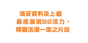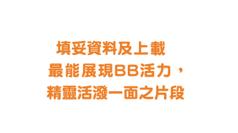 - 活力BB組決賽名額共8名。成功上載片段後,一田將進行挑選。最有活力,精靈活潑及最具人氣BB可增加參賽機會,成功進入決賽將會有專人聯絡。